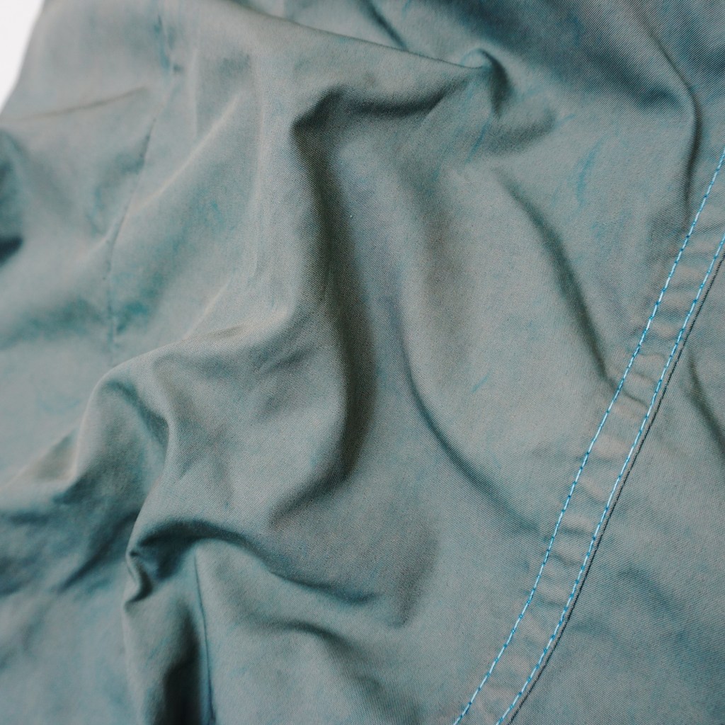 化繊素材を違う染色方法で2回染める事によって独特な見た目に